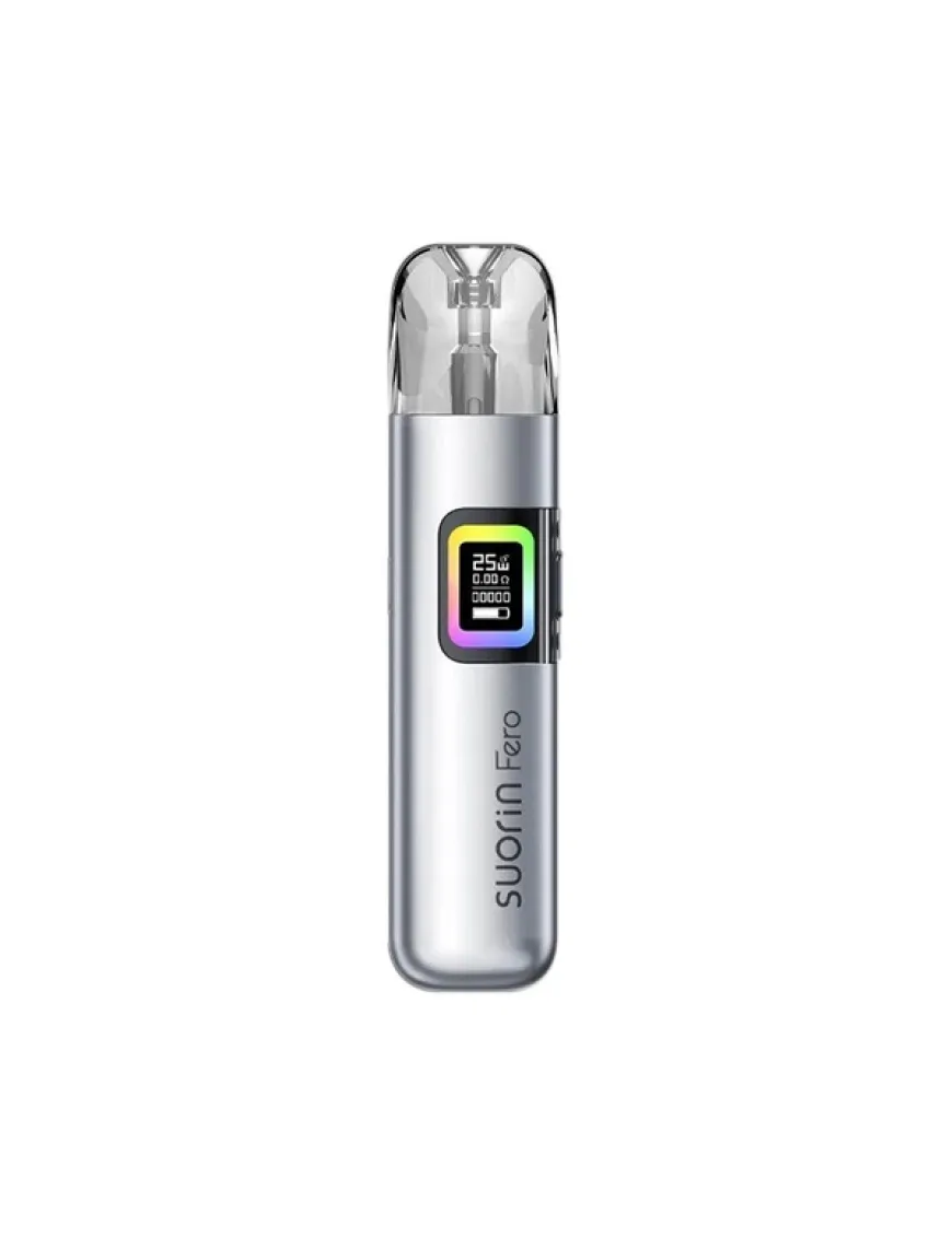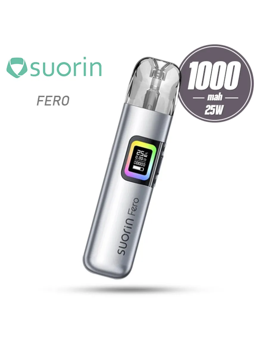 Suorin Fero Pod Kit 1000 мАч - компактная POD система, оснащенная мощным аккумулятором, регулировкой затяжки и рассчитанная на использование сменных картриджей со встроенными испарителями. Корпус устройства выполнен из алюминиевого сплава в виде стика с закругленными углами. В качестве декора использован симпатичный геометрический узор и градиентный окрас некоторых версий. Панель управления богата единственной клавишей, однако активация достигается в том числе и по затяжке. Помимо этого имеется небольшой монохромный дисплей, опоясанный оригинальной RGB-лентой. Питание Suorin Fero обеспечивается встроенным аккумулятором, емкостью 1000 мАч. Зарядка аккумулятора производится при помощи разъема USB Type-C, расположенного на одной из боковых граней устройства, током 2А. Управляющий чипсет работает в единственно доступном режиме – вариватт и имеет скромный диапазон настройки мощности до 25Вт. О регулировке интенсивности затяжки создатели не забыли – аккуратный ползунок расположен на противоположной стороне корпуса. Картриджная система новая, это резервуары хорошей емкости на 3 мл, с боковой не быстродоступной заправкой. В комплекте Suorin Fero представлены два картриджа со встроенными сеточными испарителями с сопротивлением 0.6 и 0.8 Ом.
