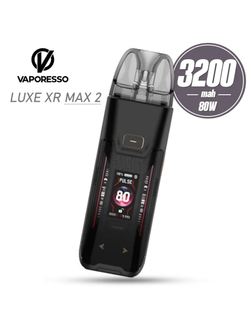 Vaporesso LUXE XR MAX 2 Pod Kit 3200 мАч - обновленная версия Pod системы от Vaporesso, сохранившая все корпоративные черты известных предков. Это тот же приплюснутый стик с приличными габаритами и весом. Корпус устройства изготовлен из металла и термостойких полимеров в виде прямоугольника со скругленными углами и габаритами 108 х 32.1 х 26.4 мм. На лицевой стороне расположен цветной дисплей с динамической RGB-подсветкой, над ним кнопка включения, а под экраном - сенсорные клавиши настройки. На одной из боковин установлен ползунок регулировки интенсивности затяжки, на нижнем торце с силиконовым покрытием расположился современный порт зарядки USB Type-C и ползунок быстрой блокировки девайса. Встроенный аккумулятор емкостью 3200 мАч обеспечивает длительное время автономной работы устройства. Зарядка осуществляется через порт Type-C, током 2А. Vaporesso LUXE XR MAX 2 оснащен чипсетом Axon с максимальной мощностью 80 Вт, который предоставляет работу в режиме VW с возможностью разделения на три подрежима: Smart - режим, подстраивающий мощность под сопротивление вашего картриджа; Pulse - устройство автоматически подбирает наибольшее допустимое значение мощности, на которой может работать установленный картридж, чтобы обеспечить наибольшее количество пара; Eco - энергосберегающий режим. Устройство автоматически подбирает наименьшее значение мощности, на которой может работать установленный картридж. Активация устройсва производится по затяжке либо нажатием кнопки. Картриджная система не нова и позаимствована у однофамильцев-предшественников. В комплекте представлены два картриджа из серии LUXE XR(DTL и MTL) на сменных испарителях GTX 0.2 и 0.8 Ом соответственно. Кроме того, устройство поддерживает картриджи на встроенных испарителях серии LUXE X.