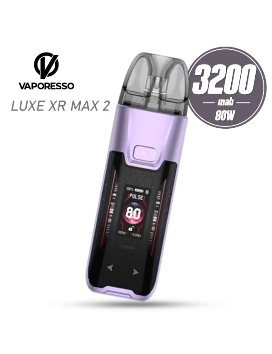 Vaporesso LUXE XR MAX 2 Pod Kit 3200 мАч - обновленная версия Pod системы от Vaporesso, сохранившая все корпоративные черты известных предков. Это тот же приплюснутый стик с приличными габаритами и весом. Корпус устройства изготовлен из металла и термостойких полимеров в виде прямоугольника со скругленными углами и габаритами 108 х 32.1 х 26.4 мм. На лицевой стороне расположен цветной дисплей с динамической RGB-подсветкой, над ним кнопка включения, а под экраном - сенсорные клавиши настройки. На одной из боковин установлен ползунок регулировки интенсивности затяжки, на нижнем торце с силиконовым покрытием расположился современный порт зарядки USB Type-C и ползунок быстрой блокировки девайса. Встроенный аккумулятор емкостью 3200 мАч обеспечивает длительное время автономной работы устройства. Зарядка осуществляется через порт Type-C, током 2А. Vaporesso LUXE XR MAX 2 оснащен чипсетом Axon с максимальной мощностью 80 Вт, который предоставляет работу в режиме VW с возможностью разделения на три подрежима: Smart - режим, подстраивающий мощность под сопротивление вашего картриджа; Pulse - устройство автоматически подбирает наибольшее допустимое значение мощности, на которой может работать установленный картридж, чтобы обеспечить наибольшее количество пара; Eco - энергосберегающий режим. Устройство автоматически подбирает наименьшее значение мощности, на которой может работать установленный картридж. Активация устройсва производится по затяжке либо нажатием кнопки. Картриджная система не нова и позаимствована у однофамильцев-предшественников. В комплекте представлены два картриджа из серии LUXE XR(DTL и MTL) на сменных испарителях GTX 0.2 и 0.8 Ом соответственно. Кроме того, устройство поддерживает картриджи на встроенных испарителях серии LUXE X.