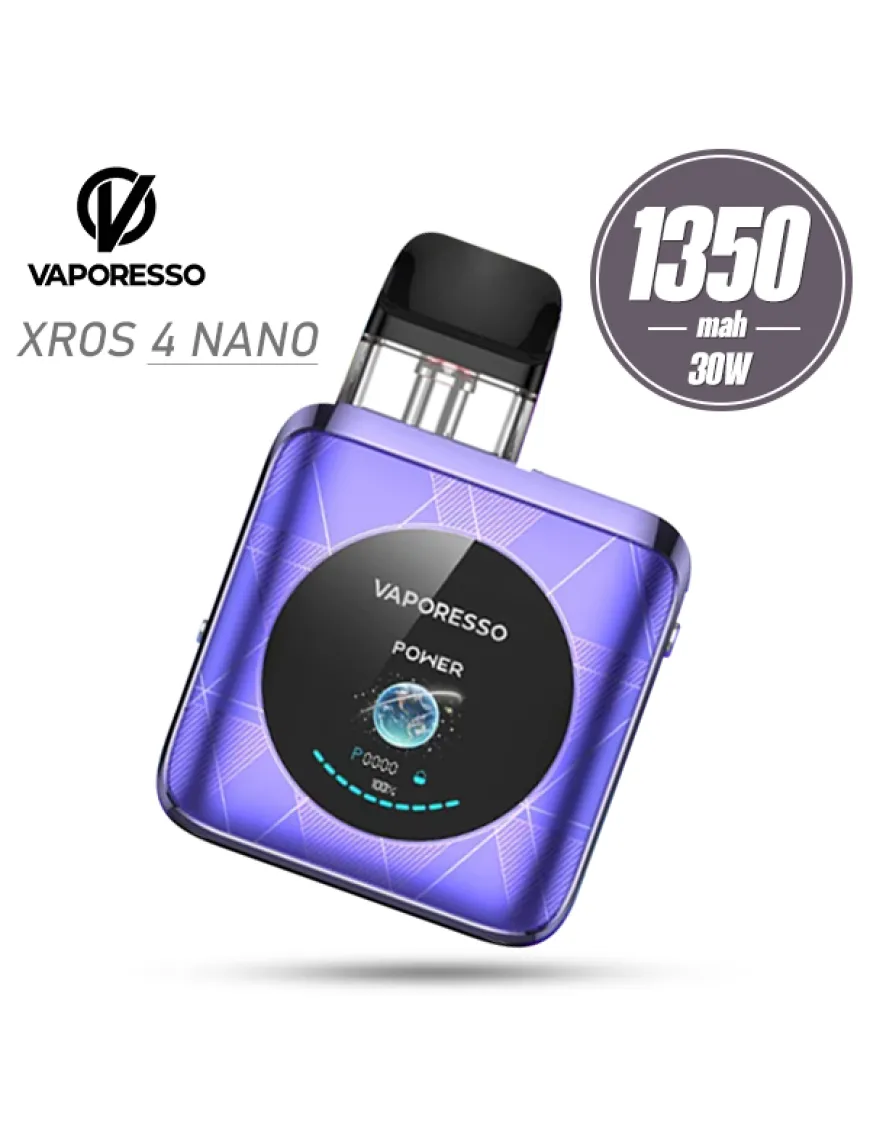 Vaporesso XROS 4 Nano Pod Kit 1350 мАч - компактная POD система c вариативной мощностью, оснащенная мощным аккумулятором и цветным интерфейсом с различными темами. Корпус устройства выполнен из алюминиевого сплава в формате компактного квадрата с плавным скругленным силуэтом. На лицевой стороне расположен большой круглый TFT дисплей с анимацией. Регулировка интенсивности затяжки реализована с помощью аккуратного ползунка на одной из боковин устройства. На другой боковине расположена кнопка активации и современный разъем USB Type-C. Питание Vaporesso XROS 4 Nano обеспечивается встроенным аккумулятором, емкостью 1350 мАч, а это довольно приличный показатель. Зарядка аккумулятора производится при помощи разъема USB Type-C, током 2А. Активируется POD система по затяжке либо посредством нажатия универсальной кнопки, с помощью которой можно еще управлять девайсом и анимацией. Два нажатия активируют меню настроек, три — регулируют мощность, четыре — блокируют или разблокируют устройство, а пять кликов включают или выключают его. В комплекте Vaporesso XROS 4 Nano представлены два картриджа XROS Series COREX 2.0 со встроенными сеточными испарителями на 0.4 и 0.8 Ом. Картриджи вмещают до 3 мл жидкости, оснащены защитой от протечек по фирменному стандарту SSS и модернизированной технологией COREX 2.0, которая обеспечивает более интенсивный вкус и увеличивает срок службы испарителя. Для заправки картриджа необходимо снять мундштук и в небольшое отверстие с обратным клапаном залить 3 мл жидкости. Так же можно использовать и другие картриджи серии XROS.