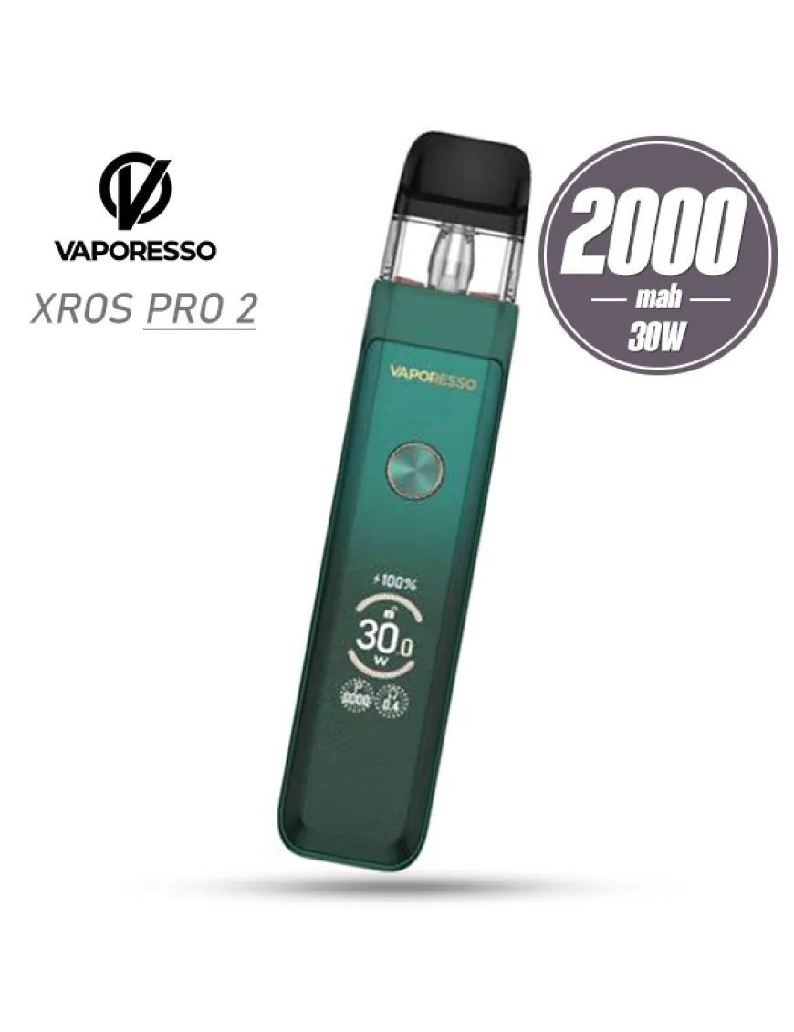 Vaporesso XROS PRO 2 2000 мАч - усовершенствованная версия Pod системы линейки XROS от известной компании Vaporesso. Устройство получило вытянутый прямоугольный корпус из магниевого сплава, более ёмкий аккумулятор и обновлённые картриджи Corex 3.0. На лицевой стороне установлена круглая кнопка активации и IML панель с потайным TFT дисплеем, тыльная сторона оснащена ползунком регулировки обдува. Активация устройства происходит как при затяжке, так и с помощью кнопки. Немаловажная особенность Pod системы, что она работает под управлением всем известного чипа Axon, поддерживающим максимальную мощность в 30 ватт и усовершенствованный режим Super Pulse, который обеспечивает ровную подачу мощности с первой до последней секунды затяжки. Питание Vaporesso XROS PRO обеспечивается встроенным аккумулятором, емкостью 2000 мАч, зарядка аккумулятора производится при помощи разъема USB Type-C, расположенного на нижнем торце устройства, током 2А. В комплекте Vaporesso XROS PRO 2 представлены два картриджа XROS Series COREX 3.0 со встроенными сеточными испарителями на 0.4 Ом и 0.6 Ом. Технология COREX 3.0 обеспечивает улучшенные характеристики по сравнению с предыдущим поколением картриджей и увеличивает срок службы испарителя на 30%. Одна из ключевых особенностей устройства в том, что в него можно устанавливать любые картриджи серии XROS, благодаря чему не возникнет сложностей с поиском расходных материалов.