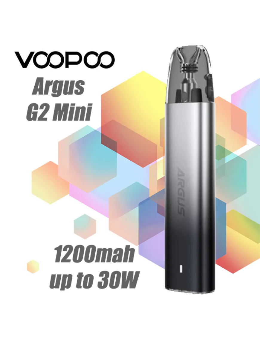 Voopoo Argus G2 Mini Pod Kit 1200 мАч - компактная POD система с мощным аккумулятором, автоматической подстройкой мощности и настраиваемым обдувом. Pod система выполнена в виде стика, корпус изготовлен из алюминеевого сплава. Интерфейс новинки бескнопочный, активируется с помощью датчика затяжки. Предусмотрена LED-индикация, небольшой светодиод у основания. Нижний торец выполнен из полупрозрачного пластика – туда индикация также дублируется. На тыльной стороне расположено воздухозаборное отверстие, дополненное маленьким регулятором интенсивности затяжки. Питание Voopoo Argus G2 Mini Pod Kit обеспечивается встроенным аккумулятором повышенной емкости 1200 мАч, мощность на выходе регулируется автоматически, в зависимости от сопротивления испарителя, в пределах от 5 до 30 Вт. Зарядка аккумулятора производится при помощи разъема USB Type-C, расположенного на нижнем торце устройства, током 1А. Картриджная система полностью обновлена – это расходники на встроенных испарителях Argus Top Fill Cartridge с продолжительным "жизненным циклом", увеличенным объемом 3 мл и боковой, однако теперь быстродоступной, заправкой. Voopoo Argus G2 Mini полностью совместим в предыдущими картриджами серии Argus.