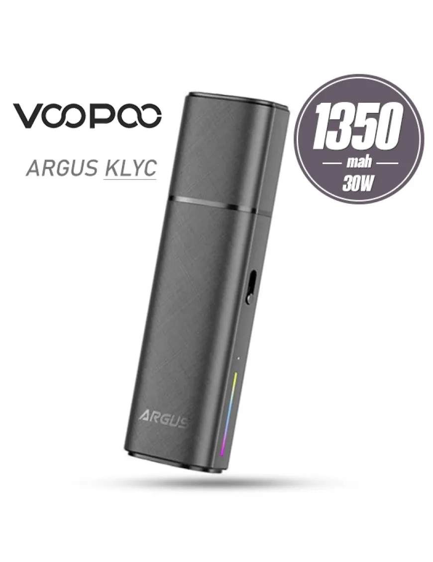Voopoo Argus Klyc Pod Kit 1350 мАч - компактная POD система с мощным аккумулятором, автоматической подстройкой мощности и новой картриджной системой. Корпус Pod системы довольно компактный, изготовлен из алюминеевого сплава в виде приплюснотого стика с магнитным защитным колпачком. LED индикатор событий представлен в виде вертикальной RGB полосы на одной из боковых граней, там же расположен и регулятор интенсивности затяжки. Интерфейс новинки бескнопочный, активируется с помощью датчика затяжки. Питание устройства обеспечивается встроенным аккумулятором повышенной емкости 1350 мАч, мощность на выходе регулируется автоматически, в зависимости от сопротивления испарителя, в пределах от 5 до 30 Вт. Зарядка аккумулятора производится при помощи разъема USB Type-C, расположенного на боковой грани корпуса, током 1.2А. Картриджная система полностью обновлена – это расходники со встроенными испарителями на сетке Argus Top Fill Cartridge V2 с повышенным ресурсом работы по авторской технологии COSM CODE 2.0, которая, по заверениям производителя, увеличивает ресурс встроенного испарителя до 30 дней. Резервуар имеет боковую, быстродоступную заправку и может вместить в себя до 3 мл жидкости. Voopoo Argus Klyc полностью совместим в предыдущими картриджами серии Argus.