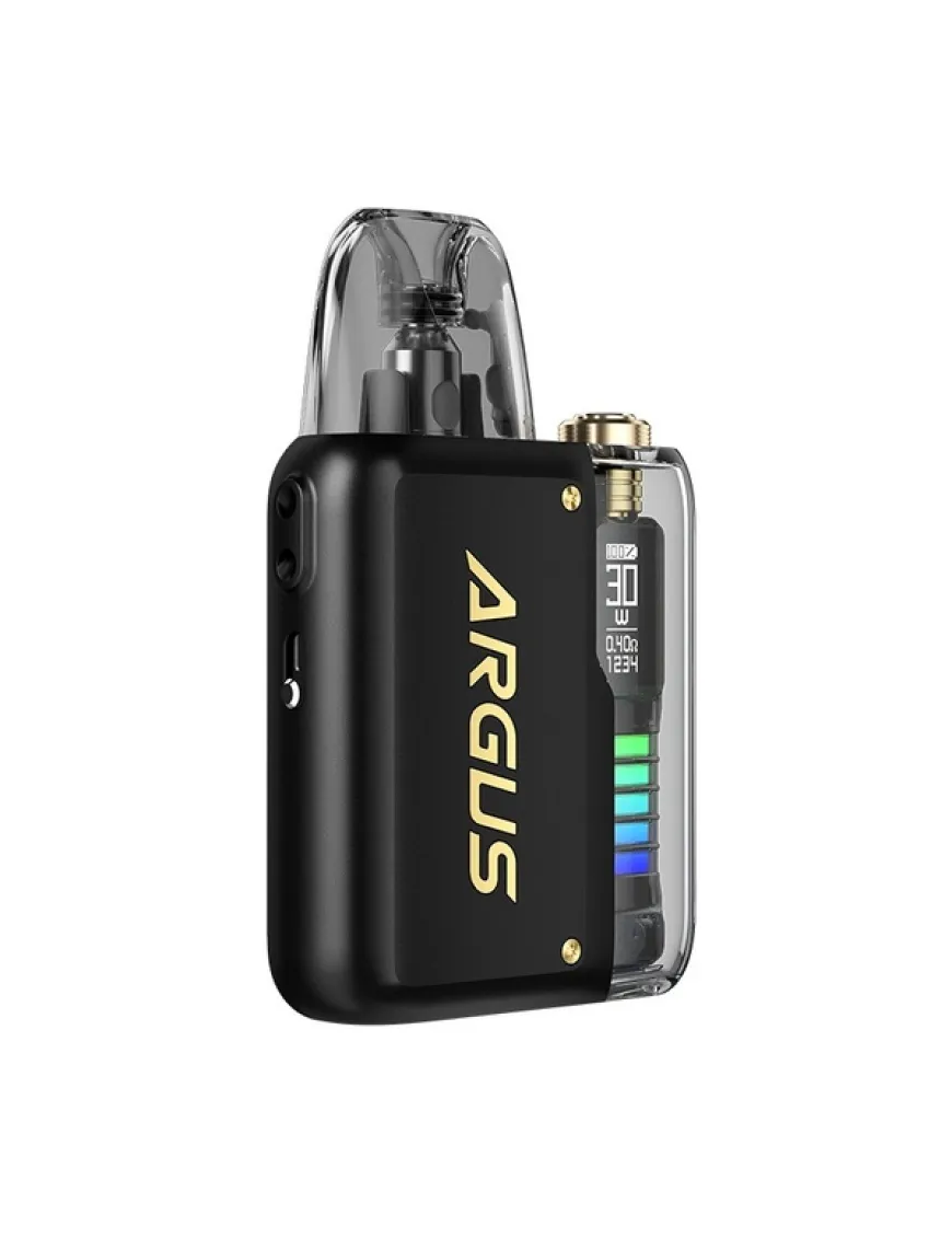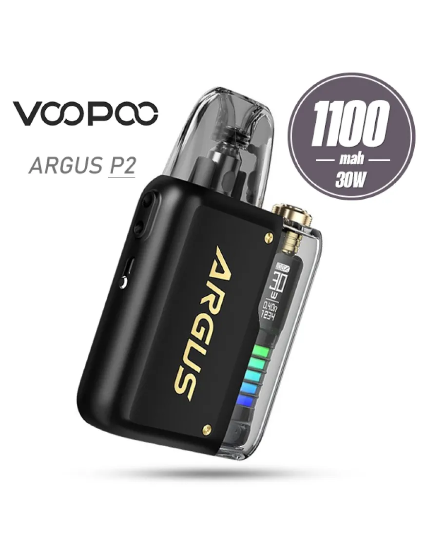 Voopoo Argus P2 Pod Kit 1100 мАг - Pod система небольшого размера с мощным аккумулятором, экстравагантным дизайном, вариативной мощностью и настраиваемым обдувом. Миниатюрный цинковый корпус выполнен в прямоугольной форме с удобными скругленными углами. Металлическая часть корпуса соединяется с пластиковой прозрачной вставкой, под которой видны управляющие элементы платы,небольшой монохромный дисплей и LED-бар. Сверху расположена небольшая круглая кнопка активации и скоба для шнурка. На одном из боковых торцов установлен ползунок регулировки затяжки.Питание Voopoo Argus P2 Pod Kit обеспечивается встроенным аккумулятором емкостью 1100 мАч, зарядка аккумулятора производится при помощи разъема USB Type-C, расположенного на нижнем торце корпуса. Предусматриваются несколько режимов работы: Power, SPT, NOR и ECO. Зажатие кнопки позволяет отключать или активировать LED-бар. В наличии 3 режима подсветки - LED M1 срабатывает в качестве украшения, LED M2 дублирует уровень заряда АКБ, LED Off выключает подсветку. Активируется дэвайс с помощью датчика затяжки либо посредством нажатия кнопки. Картриджная система полностью обновлена – это расходники на встроенных испарителях Argus Top Fill Cartridge с увеличенным "жизненным циклом", стандартно скромной емкостью 2 мл и боковой, однако теперь быстродоступной, заправкой. Voopoo Argus P2 полностью совместим в предыдущими картриджами серии Argus..