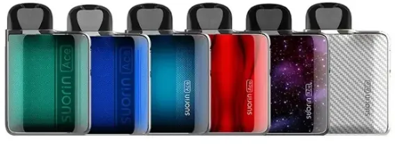 Suorin ACE Pod Kit 1000 мАг - компактна POD система від компанії Suorin. Електронна сигарета працює від потужного вбудованого акумулятора, з активацією за допомогою кнопки або затягування і розрахована на роботу зі змінними картриджами. Корпус подсистеми має прямокутну форму, доповнену опуклими бічними панелями, що надають електронці свій особливий шарм. Розміри пристрою дуже скромні – 71 х 45 х 16 мм. Suorin ACE Pod працює на постійній потужності 15 Ватт, яка забезпечується вбудованим акумулятором ємністю 1000 мАг, що для такого компактного девайсу непоганий показник. Заряджається акумулятор струмом 1 А за допомогою сучасного роз'єму USB Type-C, розташованого на верхньому торці подсистеми. Електронна сигарета оснащена досить простою, але одночасно надійною платою, що дозволяє активувати її як затяжкою, так і натисканням на невелику кнопку Fire, розташовану на бічній панелі. Про рівень заряду АКБ, зарядку та активацію повідомляє дрібний світлодіод, розташований на тій же кнопці Fire. Картридж Suorin ACE Pod Kit представлений лише в одному варіанті - з вбудованим випарником з вертикальною спіраллю опором 1 Ом. Щоб заправити картридж, його необхідно вийняти з батарейного блоку, відкрити на бічній поверхні невелику силіконову заглушку і залити 2 мл рідини. Бажано використовувати флакони з тонким металевим носиком, тому що заправний отвір досить маленький. Важливою особливістю є те, що в електронній сигареті ACE Pod можна без особливих труднощів використовувати картриджі від раніше випущеної POD системи Suorin Shine.