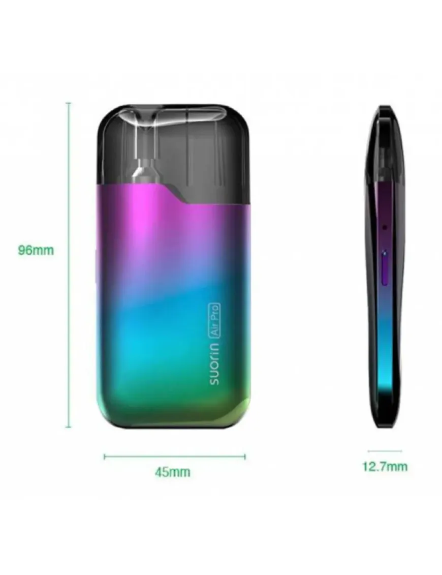 Pod система Suorin Air Pro 930 мАч является эволюционным развитием идеи под-системы карточного форм-фактора, принесшей заслуженную популярность бренду Suorin. Лицевая проекция, корпуса из цинкового сплава, по виду и форме неотличима от родоначальника линейки, легендарного Suorin Air.