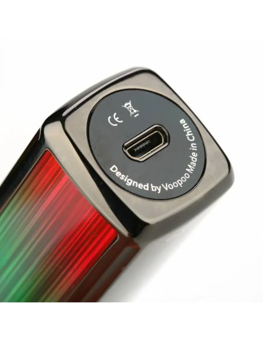 На фронтальной панели находится кнопка Fire, качелька настроек, в середине расположился цветной дисплей. На экране, помимо стандартной информации, можно посмотреть график активности мода за две недели. На нижней грани корпуса имеется порт micro USB для заряда встроенного аккумулятора, емкостью 1500 мАч.
