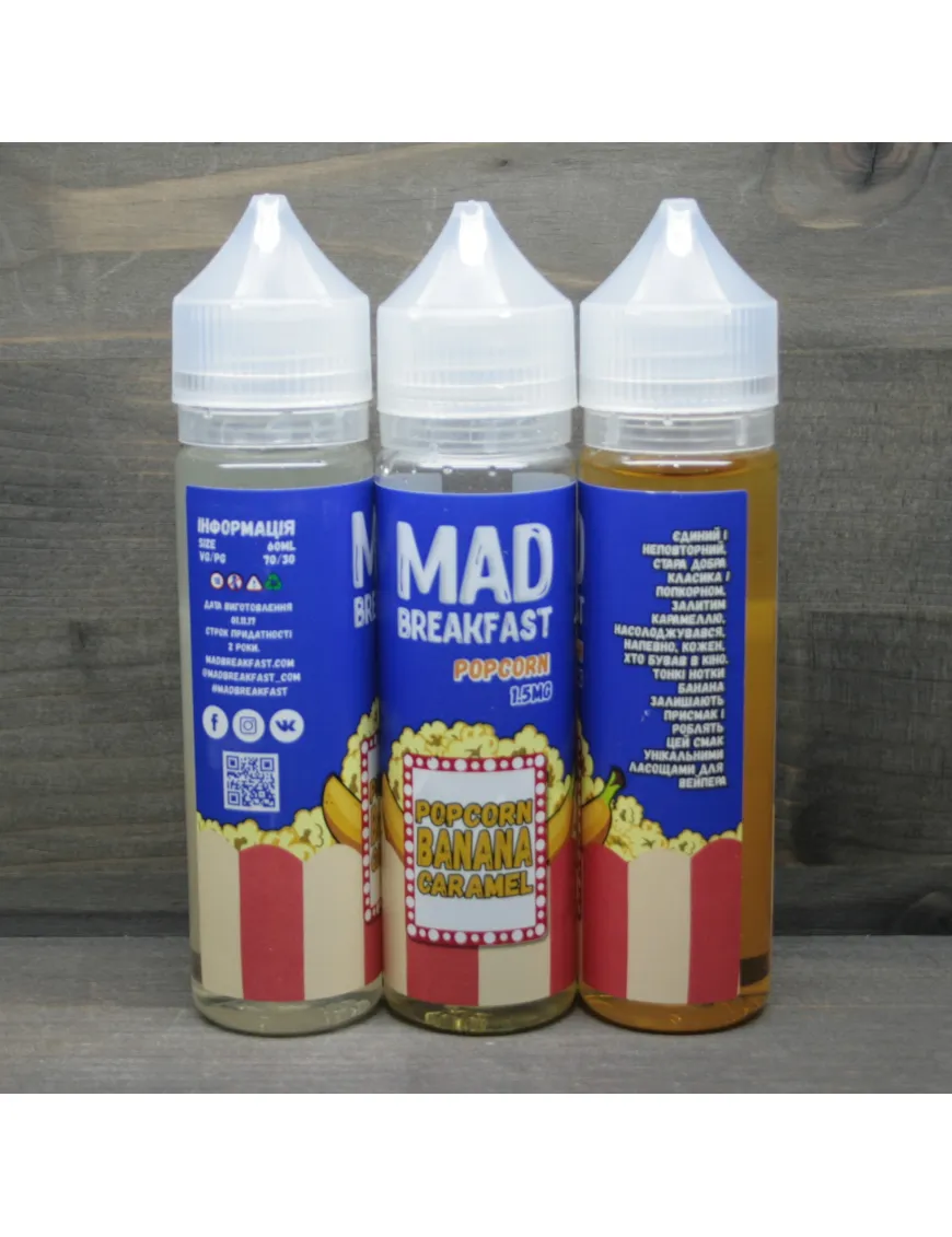 Купить жидкость для электронных сигарет Mad Breakfast - Popcorn 1.5 mg 60ml по доступной цене на сайте cloudy.in.ua можно с доставкой в любой город Украины. Следите за акциями и покупайте дешевле любимые жижы.