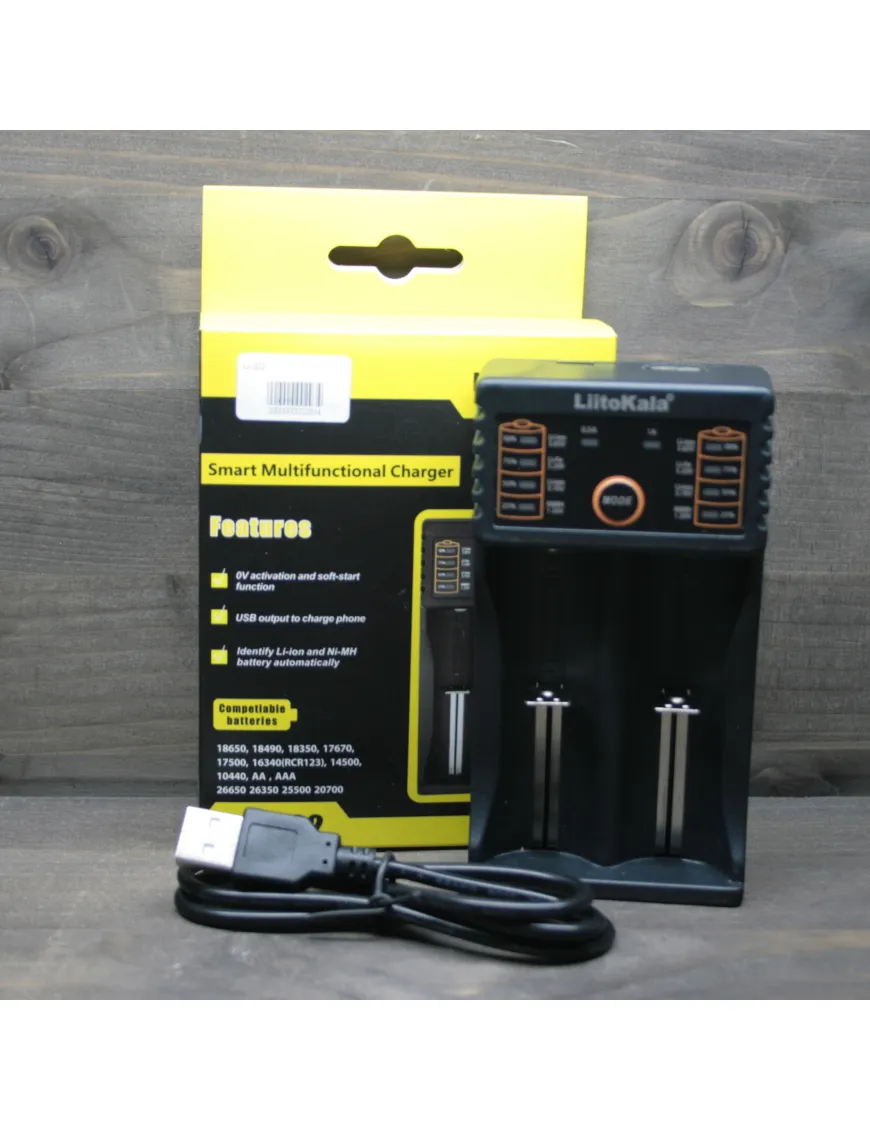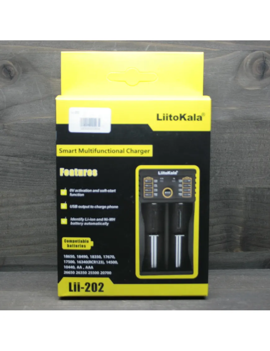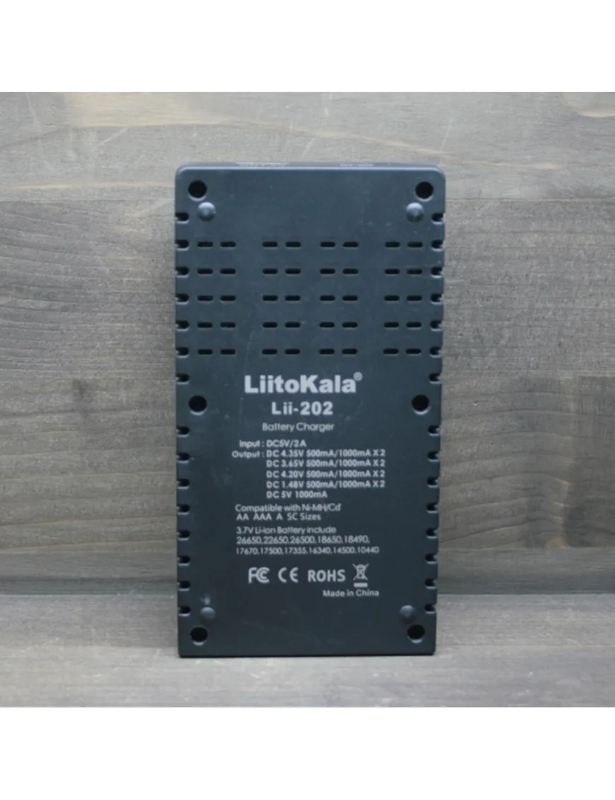 LiitoKala Lii-202 - универсальное интеллектуальное зарядное устройство, совместимое практически со всеми цилиндрическими аккумуляторами, тем самым устраняющее необходимость использования нескольких зарядных устройств. Lii-202 автоматически распознает литий-ионные, никель-металлгидридные и никель-кадмиевые аккумуляторы, заряжает литий-фосфатные (LiFePO4) аккумуляторы, а так же Li-ION аккумуляторы с конечным напряжением 4,35в.