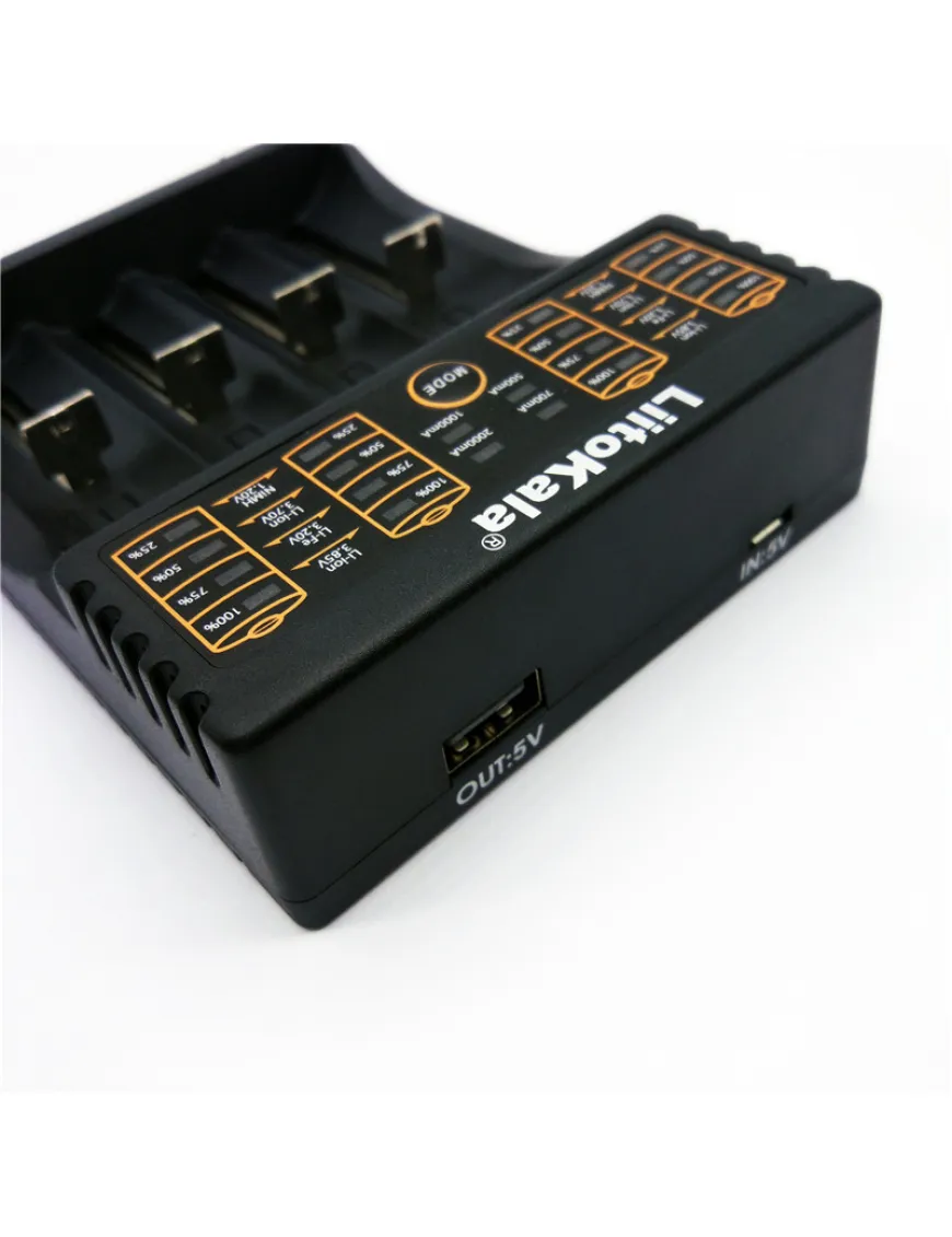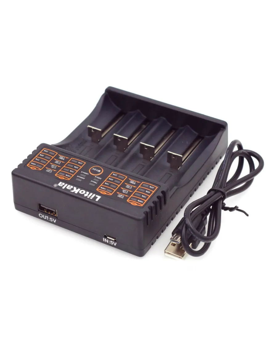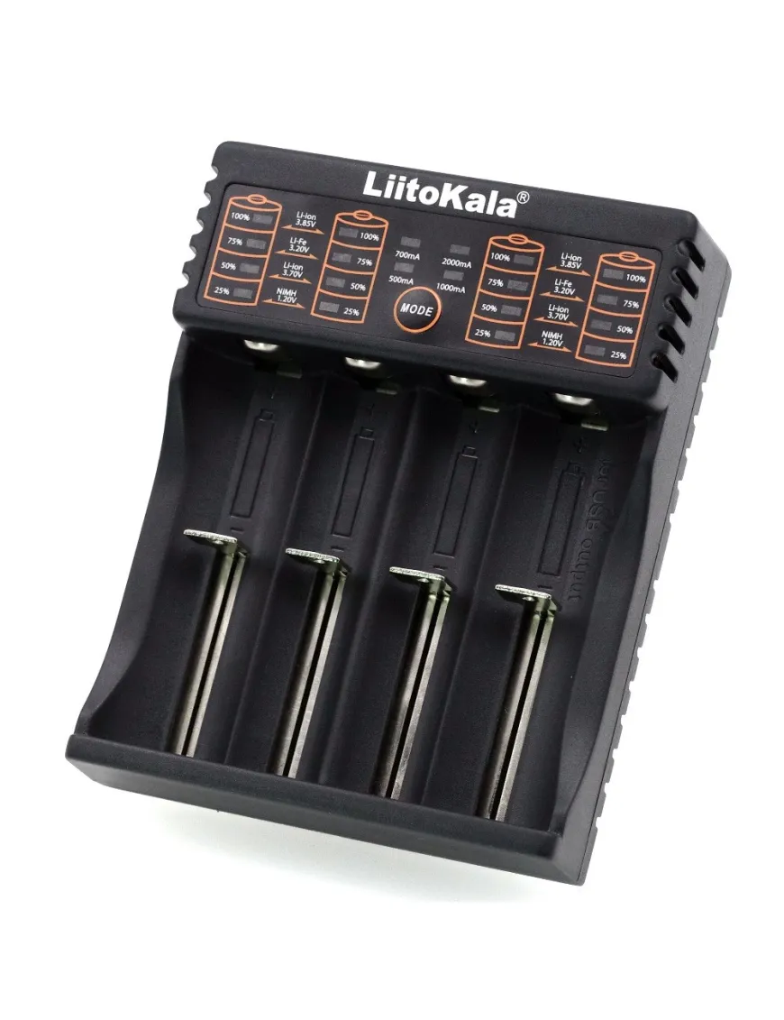 LiitoKala Lii-402 - универсальное автоматическое зарядное устройство на 4 независимых канала с функцией Power Bank. Зарядное устройство Liitokala Lii 402 может заряжать практически любые цилиндрические Ni-Mh/NiCd, Li-Ion и LiFePO4 аккумуляторы. В данном зарядном устройстве Вы сможете самостоятельно выбрать ток заряда, максимально подходящий к Вашим аккумуляторам (доступны значения 500, 700, 1000 и 2000 mA). Еще одной особенностью Liitokala 402 является наличие функции Power Bank, которая позволяет использовать данное устройство как внешний аккумулятор для зарядки телефонов, смартфонов, планшетов и др.