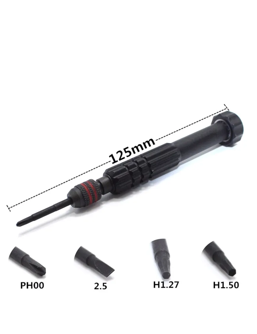 • 1 х Профессиональная отвертка (длина 125 мм, с битами PH00; 2.5; H1.27; H1.50)