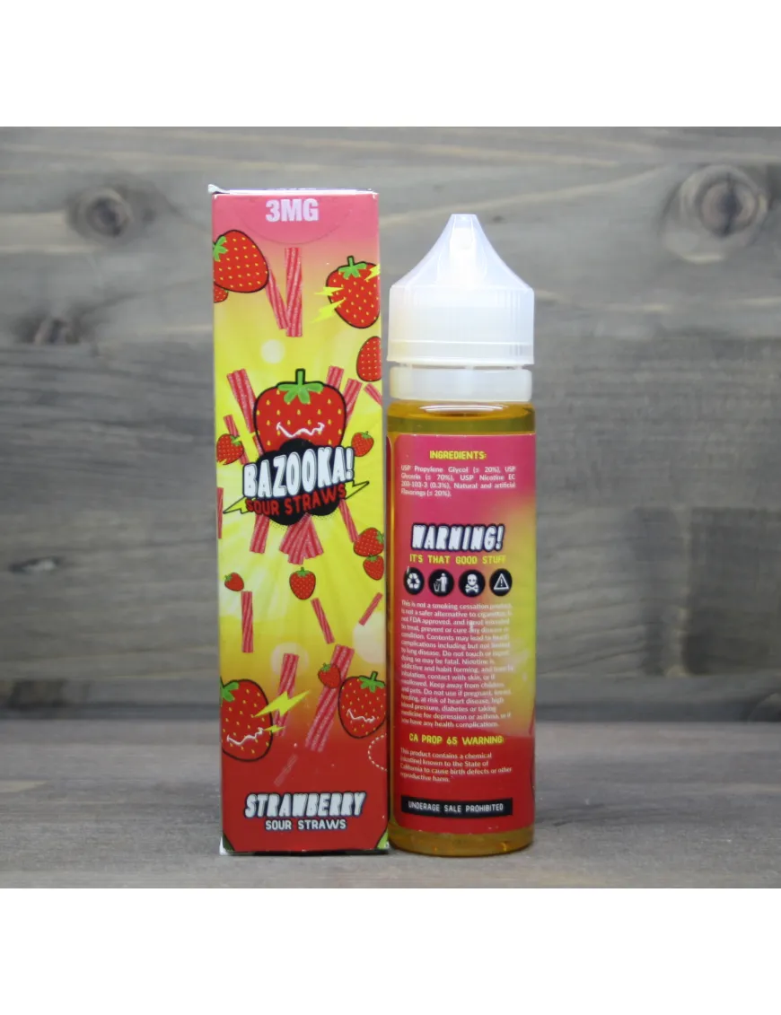 Жидкость для электронных сигарет Bazooka - Strawberry Sour Straws 60ml 3mg - фото 1