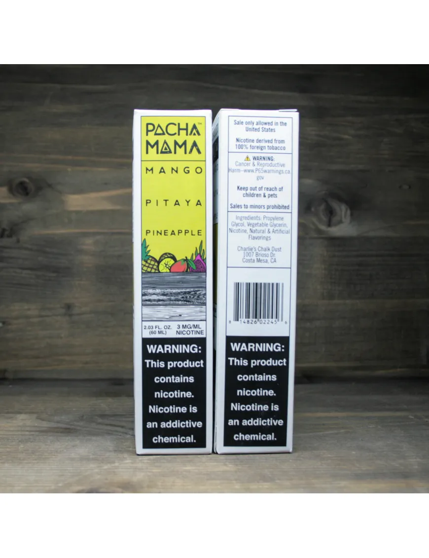 Приготовленные опытными миксологами из Charlie’s Chalk Dust, жидкости PachaMama вышли на рынок в 2016 году и были признаны бесценными жидкостями с фруктовым ароматом.