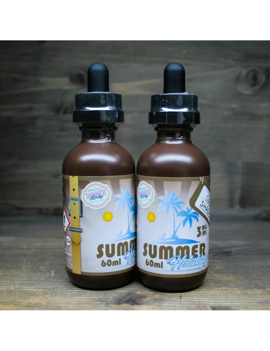 С большим удовольствием представляем Вам производителя премиальной жидкости из Великобритании - Dinner Lady. Настоящие мастера своего дела, которые сразу же заняли передовую позицию в мире производства жидкости для электронных сигарет и не только покорили, но и приятно удивили вкусовые рецепторы своих клиентов. Dinner Lady имеет три линейки вкусов, а именно табачную, десертную - Dinner Lady и фруктовую - Summer Holiday.
