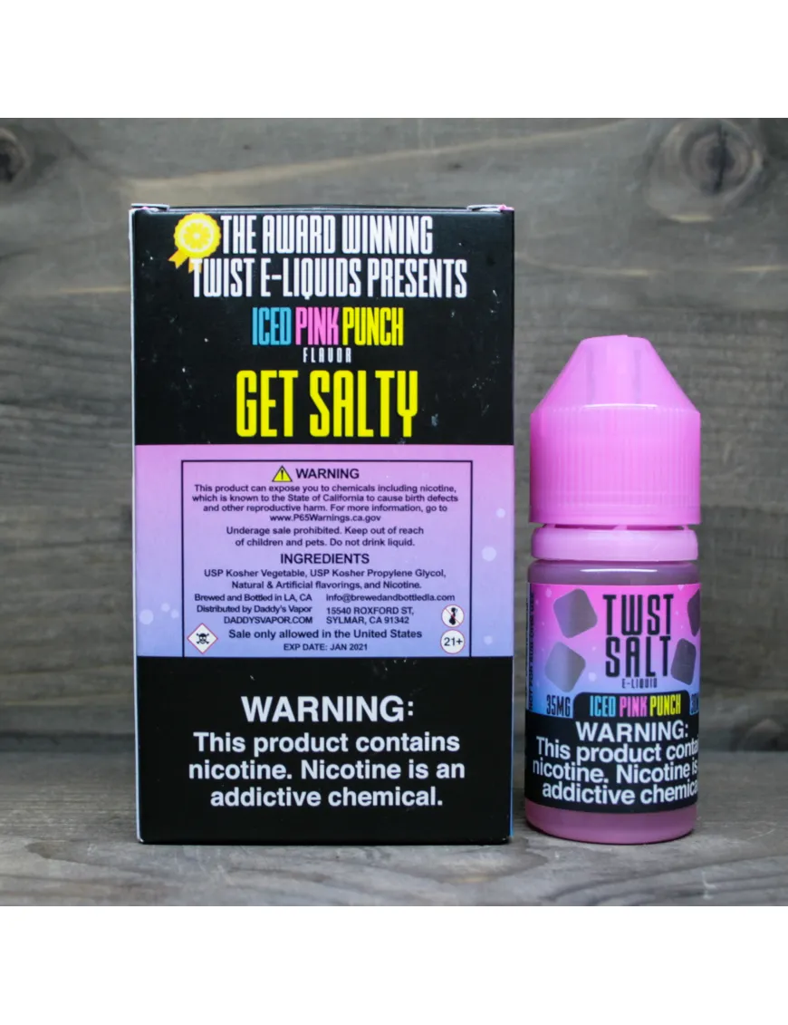 Жидкость для электронных сигарет на солевом никотине Twst Salt - Iced Pink Punch 50 mg 30 ml