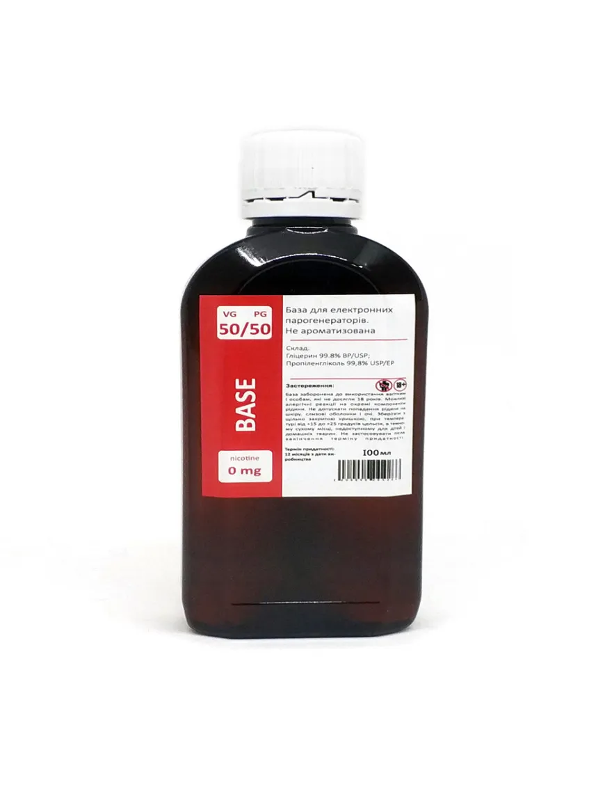 База для самостоятельного замеса жидкости для электронных сигарет. Все ингредиенты соответствуют стандартам качества. В составе равное количество глицерина и пропиленгликоля. Без никотина.